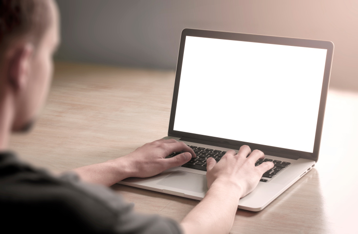 Man using laptop computer.
